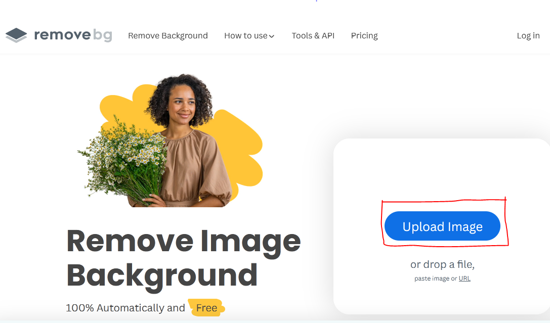 - Klik tombol “Upload Image” dan pilih foto yang ingin dihapus backgroundnya.