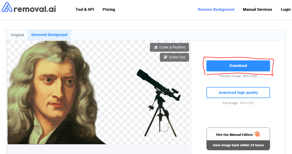 - Background foto otomatis terhapus dan kamu bisa klik tombol ‘Download’ untuk memperoleh foto tersebut di perangkat.