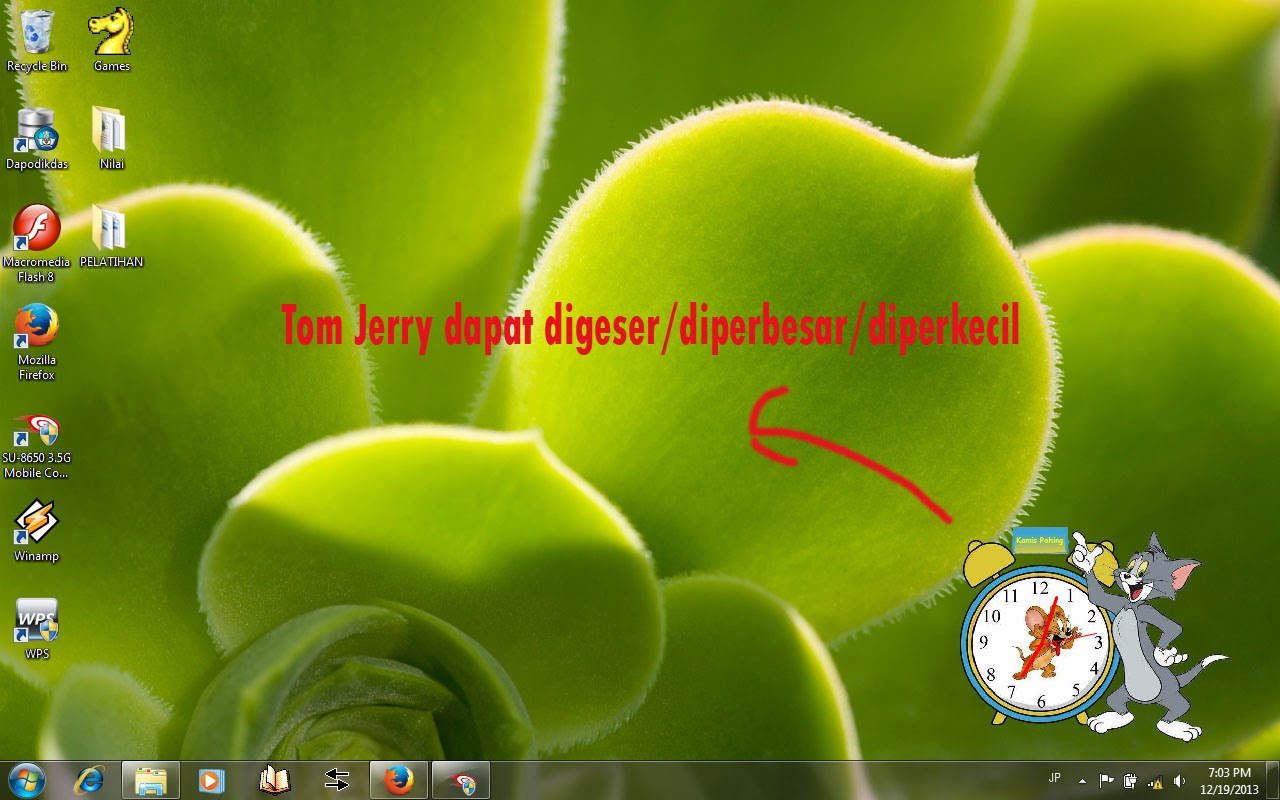Jam Tom Jerry dapat ditampilkan pada windows xp, maupun windows 7, download dan instal terlebih dahulu programnya, program ini dapat berjalan secara free maupun full versi