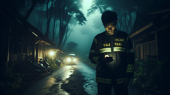 Dengan sedikit tergesa-gesa dan menantang rasa takutnya, Firman menerima orderan itu. Diperkirakan perjalanan hanya sekitar 20-25 menit. Ia pun melaju dengan motornya, membelah malam. Sesampainya di titik lokasi yang dijanjikan, sebuah keanehan segera terasa. Peta di ponselnya mulai bergerak liar, hilang lalu muncul lagi. “Wah, bener kan, mapnya ilang,” gerutu Firman. Setelah beberapa kali putar arah, akhirnya ia menemukan sebuah bangunan yang disebut “Tempat Pengobatan Pak Haji Asep” dengan sebuah masjid di sebelahnya, persis seperti deskripsi di aplikasi. Firman pun menunggu. Sepuluh menit berlalu. Dua puluh menit. Tidak ada yang keluar. Ia mencoba menelepon nomor pemesan, namun tidak ada jawaban.